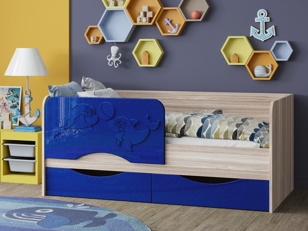 Детская Кровать Дельфин-2 МДФ с фасадом 3D/Разные Цвета