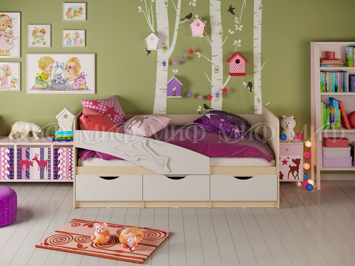 Кроватка Дельфин для Ваших детей благодаря небольшому размеру (длина 1,6м, 1.8м, 2,0 м) компактно разместится в детской комнате, и не займёт игровое пространство. Ящики под кроваткой скроют все коробочки и вещи длительного хранения. Особо радует родителей наличие бортика для безопасного сна. Корпус кроватки выполняется всегда в светлом цвете, а фасады можно выбрать. Даже внешне эта кровать выглядит очень уютной. А ограничительная планка делает ее еще и безопасной. Выбирайте любой цвет фасада для создания гармоничного интерьера.