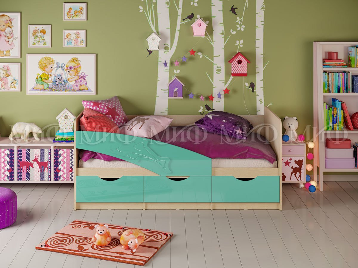 Кровать Дельфин с Ящиками МДФ/Разные Цвета